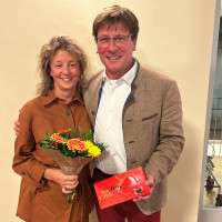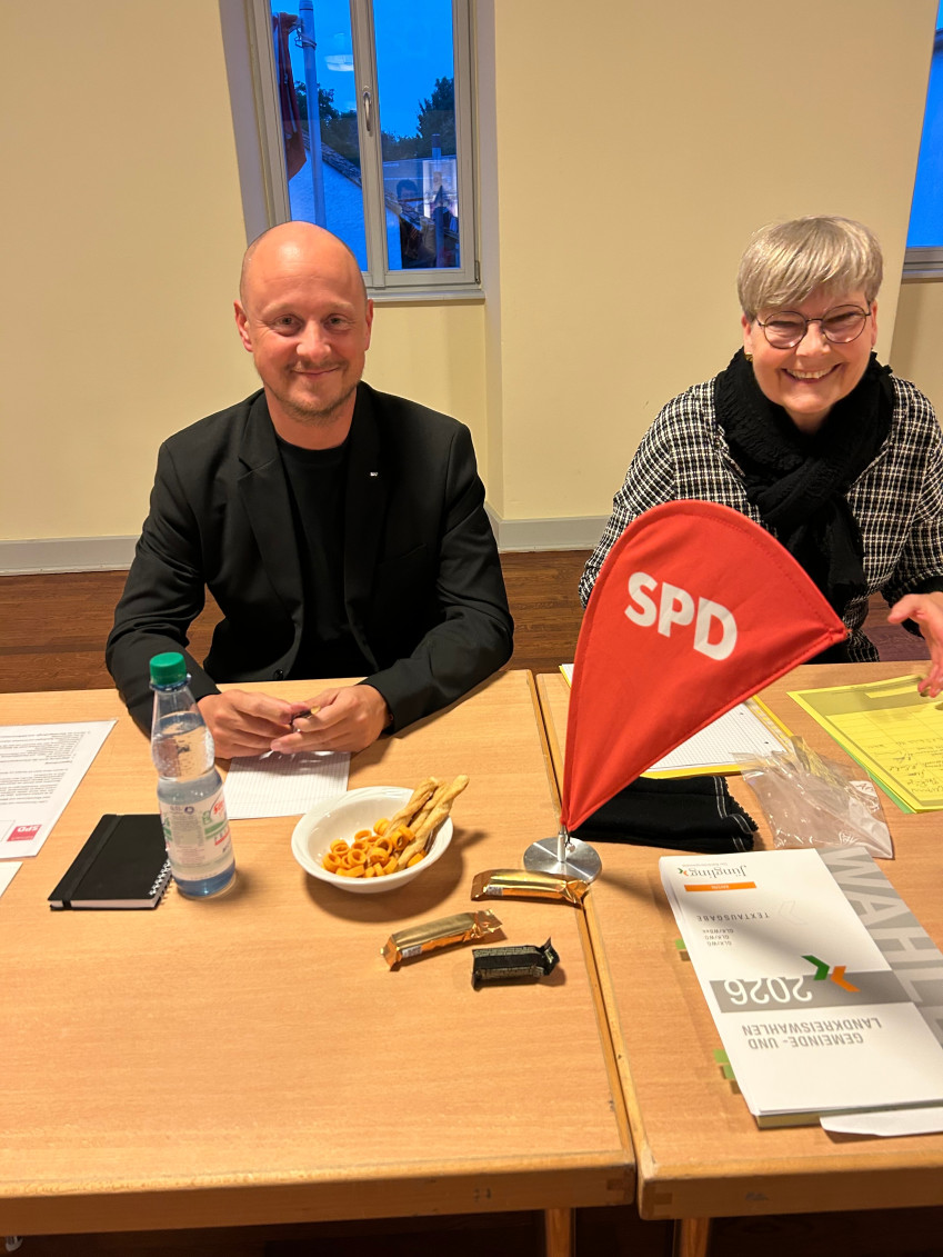 Die beiden Co-Vorsitzenden der KürnachSPD, Gabriele Grützner-Ledermann und Ilse Gebhardt-Gögercin, bedankten sich mit Blumen und einer Packung „Notre Cheri“ bei René Wohlfart, der es in seiner bisherigen Amtszeit geschafft hat, die Herzen vieler Kürnachinnen und Kürnacher mit seiner offenen, authentischen, sympathischen und ehrlichen Art zu gewinnen. „Unser Liebling“ soll der alte und neue Bürgermeister von Kürnach werden!